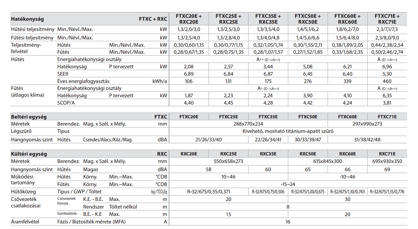 A Daikin FTXC50E / RXC50E Inverteres Split klíma fontos tulajdonságai:
