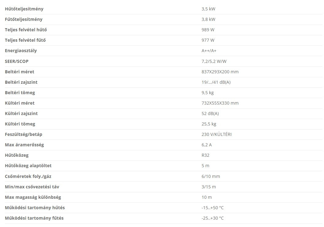 A Gree GWH12AOCXB-K6DNA2A Smart One Inverteres Split klíma fontos tulajdonságai: