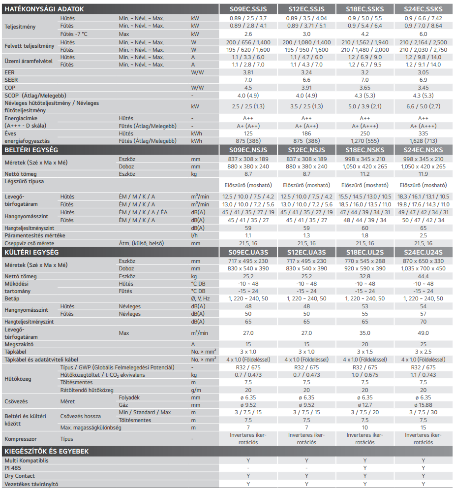 - Hűtő teljesítmény : 5,0 kW