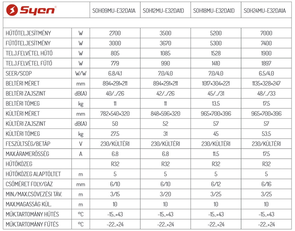 A Syen Muse SOH18MU-E32DA1D Inverteres Split klíma fontos tulajdonságai: